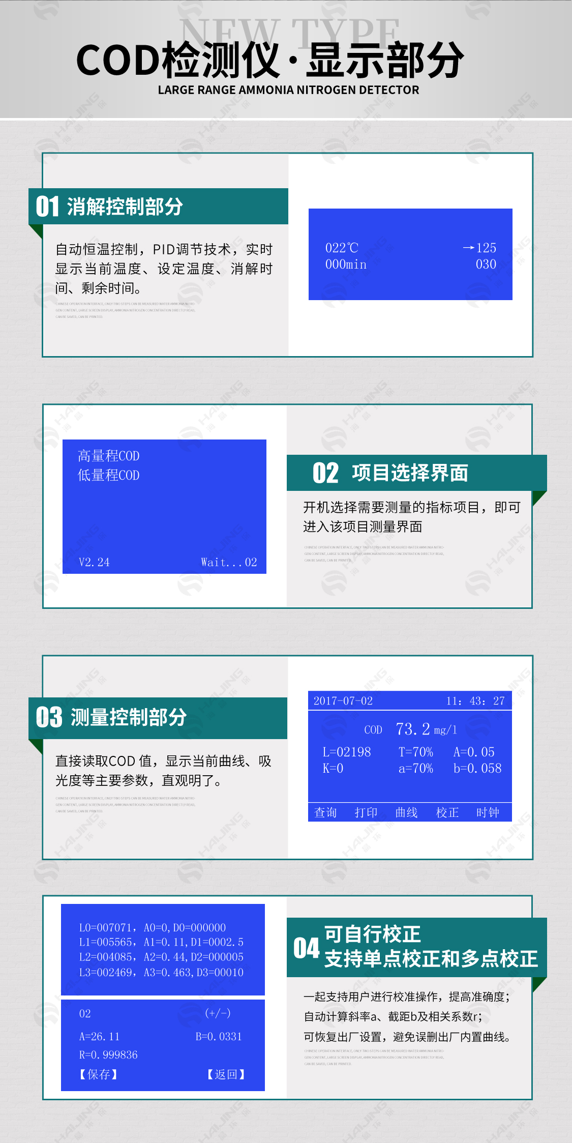 5、1點至7點校正模式,自動計算斜率、截距及相關系數,測量精度高。