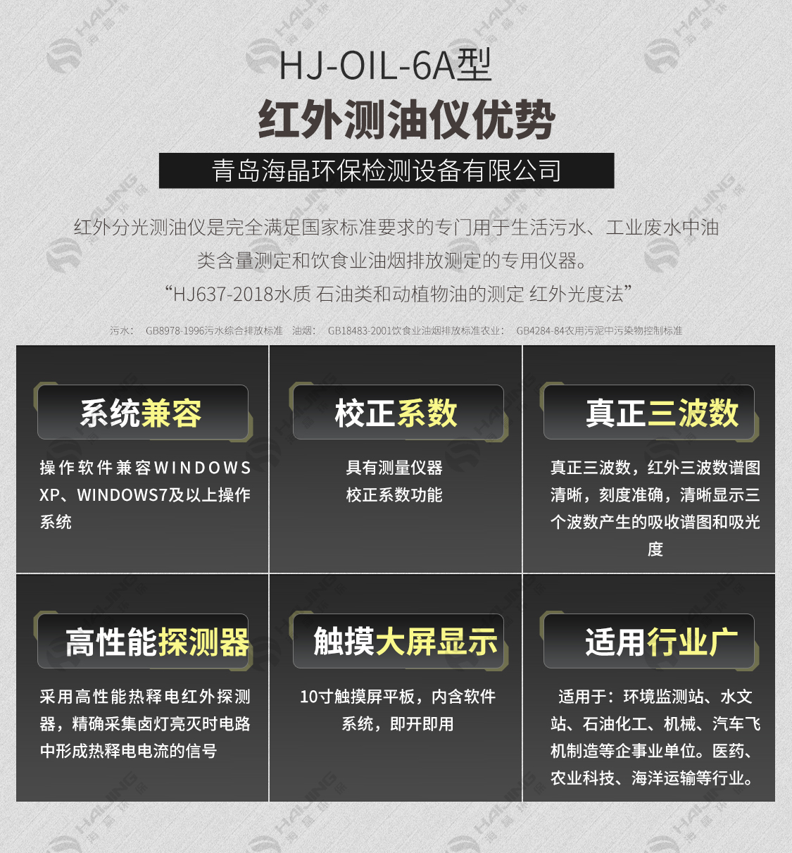可用于:生活污水、工業廢水中的礦物油和動植物油以及飲食業油煙排放檢測;