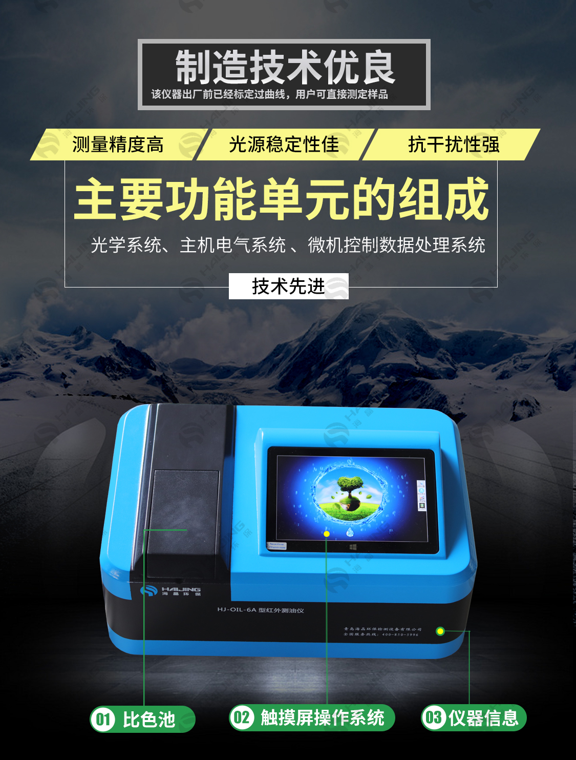 01、真正的三波數,紅外三波數譜圖清晰,刻度準確,可以清晰顯示三個波數產生的吸收譜圖和吸光度;