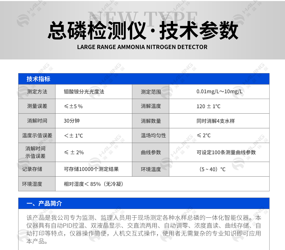 該產品是我公司專為監測、監理人員用于現場測定各種水樣化學需氧量的一體化智能儀器。本儀器具有自動PID控溫、雙液晶顯示、交直流兩用、自動調零、濃度直讀、曲線存儲、自動打印等特點,儀器操作簡便,人機交互式操作,使用者無需復雜的專業知識即可應用本產品。