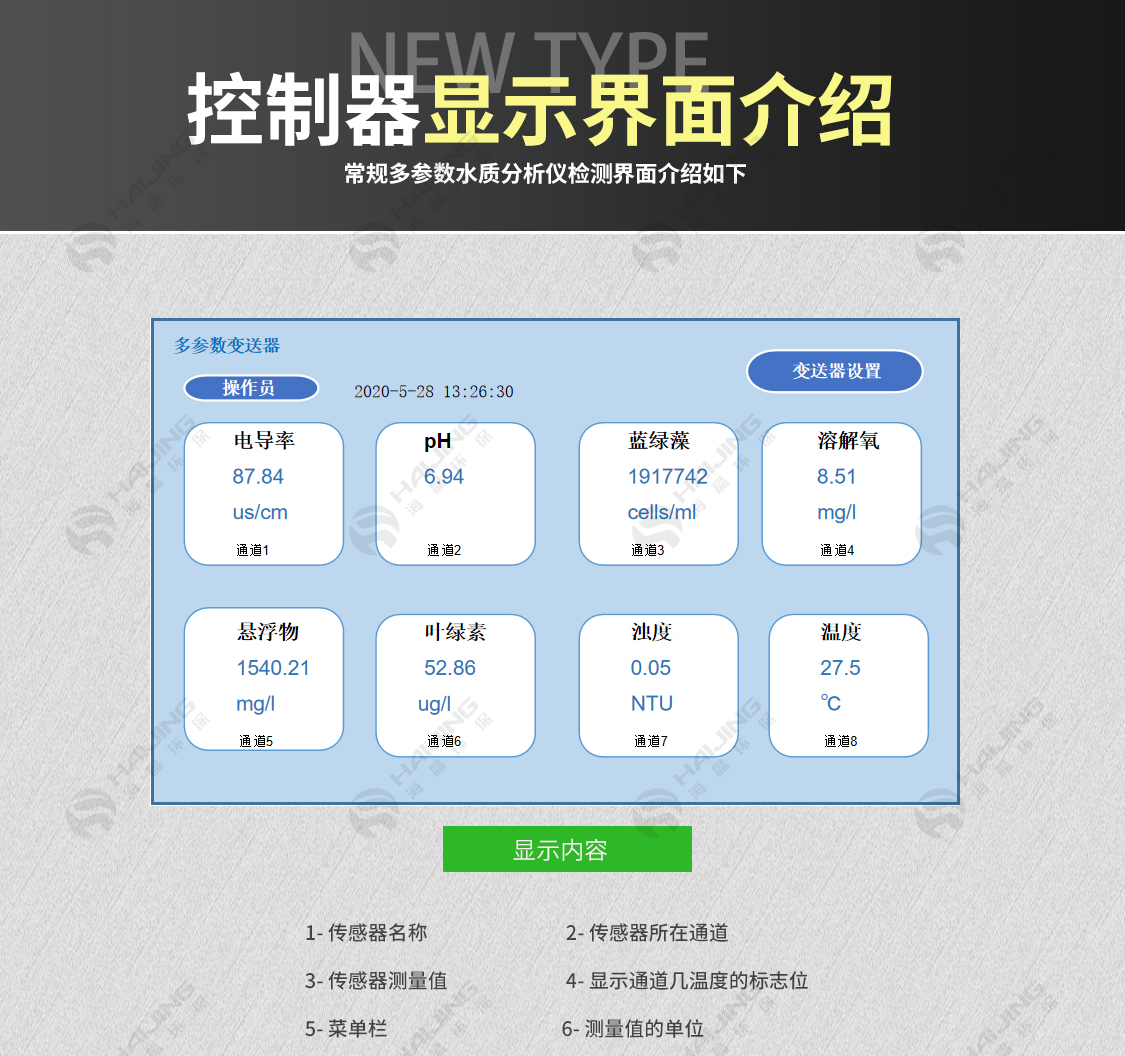 產品特點: | 常規五參數在線分析儀!一機多用!可上傳數據,實時檢測! HJ-0205型多參數水質分析儀可以根據客戶不同需求,通過選配傳感器實現同時在線監測多個多種不同參數值,包括溫度、PH、電導、溶氧、濁度、污泥濃度、葉綠素、藍綠藻等(參...... |